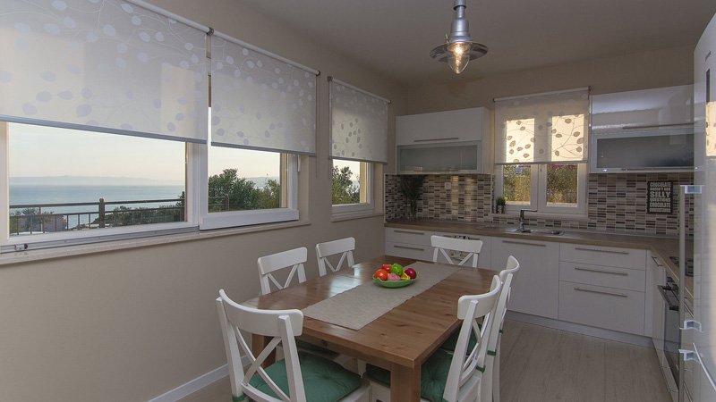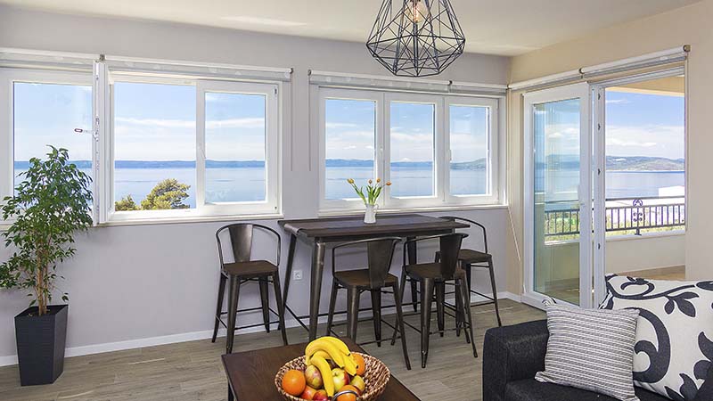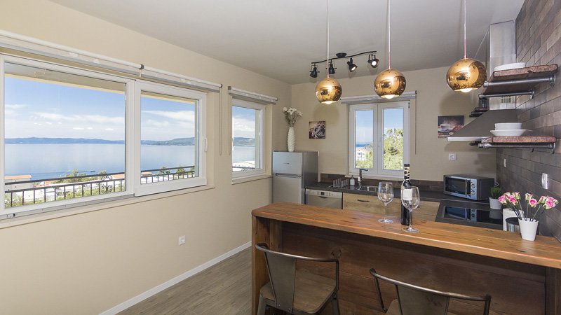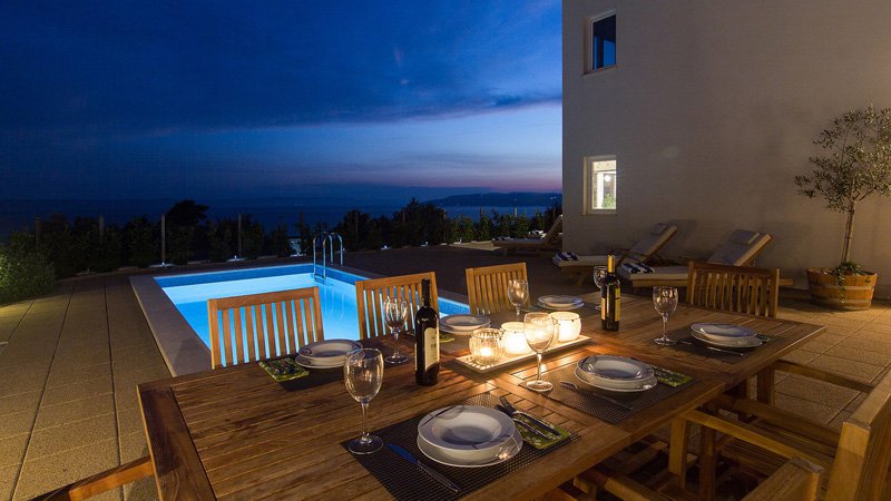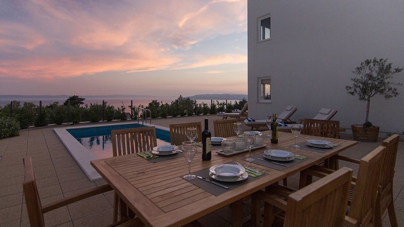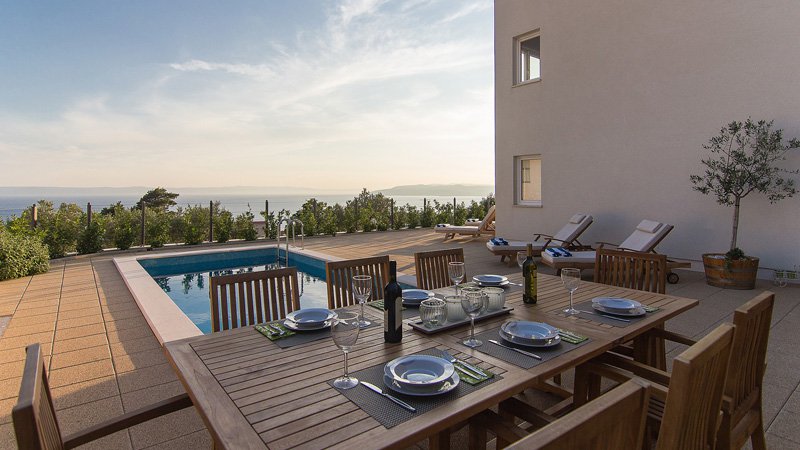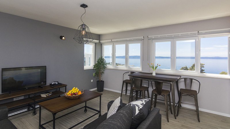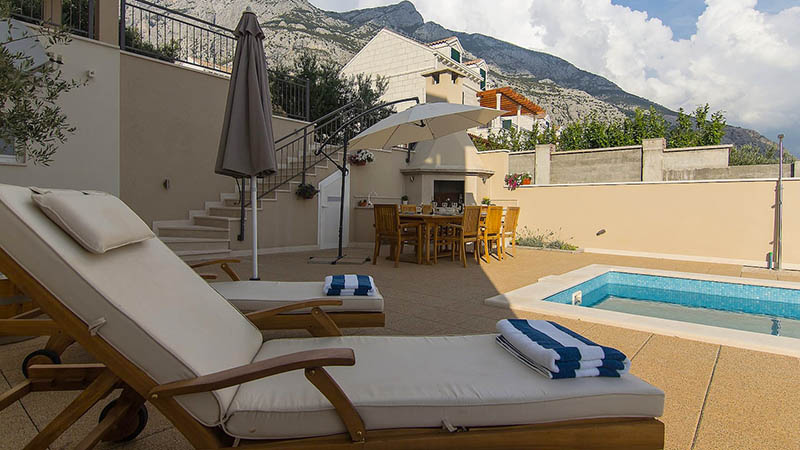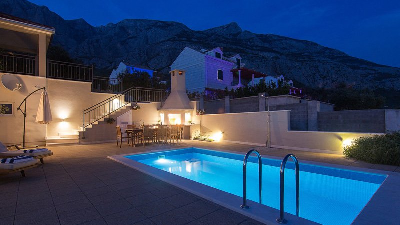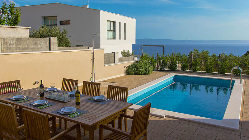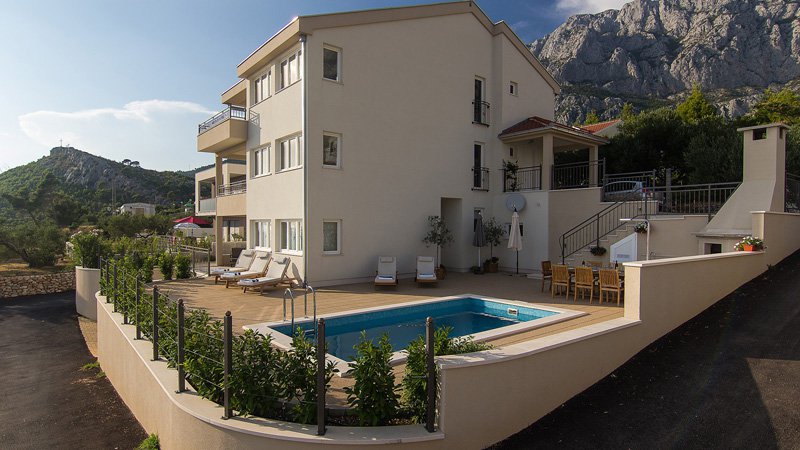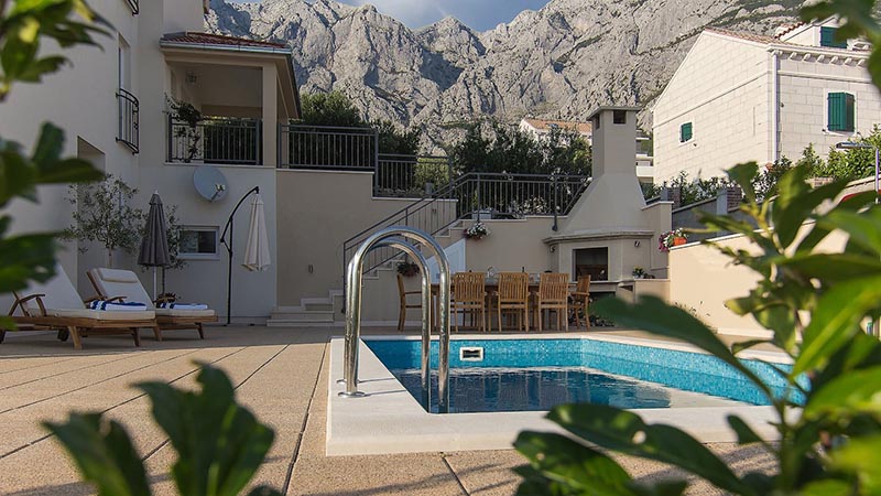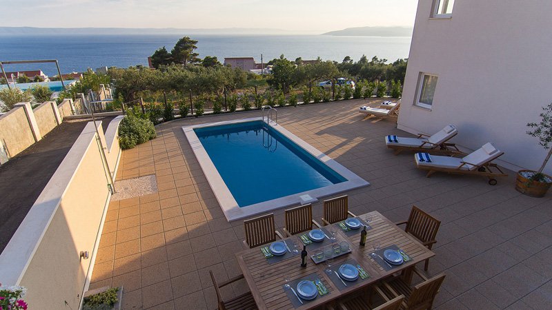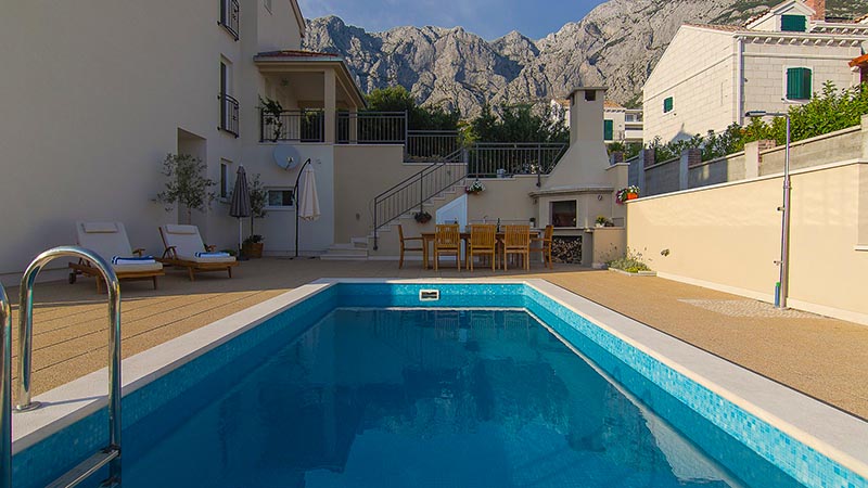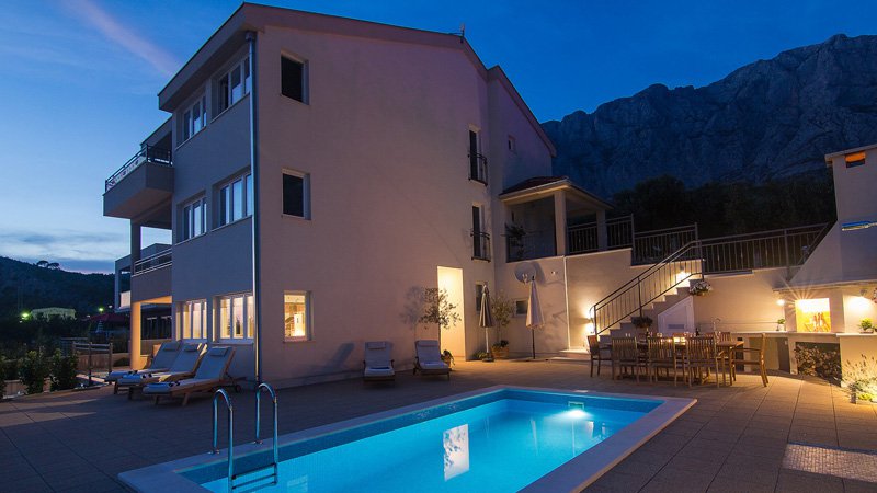 Villa Petra är beläget i vackra Makarska stads lugnare del, mellan olivträd och andra privata semesterboenden. Här finns plats för upp till 12 personer. Panoramat över Adriatiska havet, öarna Brac och Hvar och de magnifika Biokovobergen är betagande! Hela huset med två lägenheter, gym och källare med garage står till ert förfogande. Två välutrustade kök och trevliga vardagsrum. Låt dig väl smaka av morgonkaffet på balkongen och koppla av i trädgården och på den rymliga solterrassen, komplett med pool, grill- och loungeområden! Bordtennisbord och bordsfotbollsbord borgar för kul aktiviteter, liksom närbelägna vandringsstigar. Och till populära attraktioner som Makarskas hamn, den palmkantade strandpromenaden och fyren St Peter är det inte långt. En gratis shuttlebuss tar dig snabbt till restaurangen Panorama, vars namn ger en hint om de strålande vyerna som bjuds där.